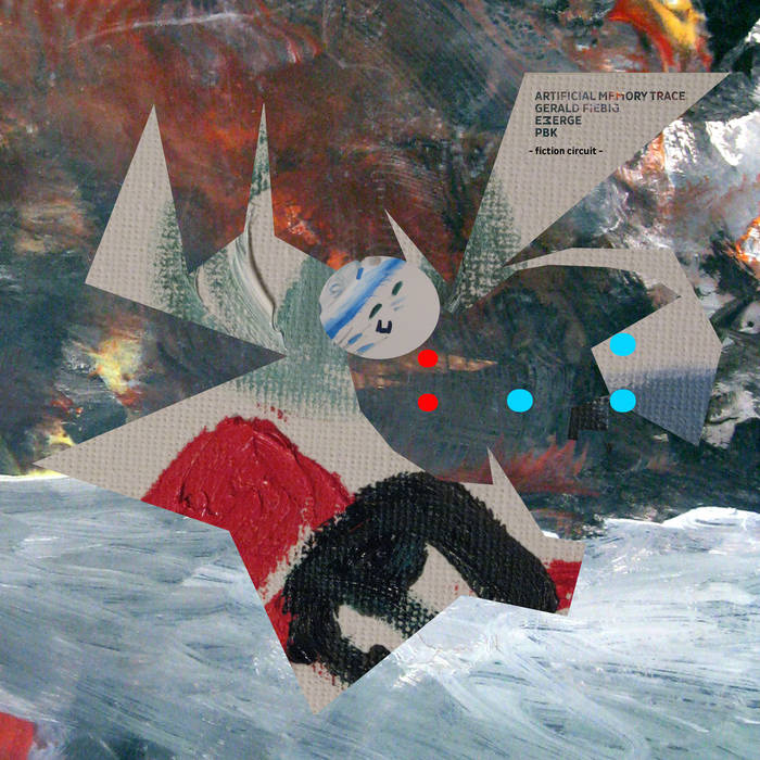 Ah, it says here "the four-way split LP is a common format in the global sound culture, "Fiction Circuit" is more than just a compilation"; ah, of course, I muttered. Maybe they are right, I thought upon closer inspection of the information, cover and music. It is, in some way, a classic late '80s product of sound exchange, blurring lines between composers and suppliers of sound material. On one side we find the source material supplied by Artificial Memory Trace in the hands of PBK and Gerald Fiebig, each creating their ten or so minute piece. The same happens on the other side, except the source material is recorded by PBK and now it's time for Artificial Memory Trace and EMERGE to play around with these sounds. Even an old sceptic, when it comes to compilations, like me would agree that is indeed something different. Pieces might actually not be ten minutes, I thought, when I was playing the PBK track, which seemed longer than Fiebig's track. PBK, as we recently (two weeks ago) found out is still a man who loves his industrial roots, with heavy use of effects. To hand him the probably delicate sounds of Artificial Memory Trace is a bold move and he reworks them into quite a beast and feast of sound transformation. Heavy-duty noise, which is also a bold move on his part; it is not the way field recordings are usually treated. Fiebig, on the other hand, keeps matters small and drone-like. He chops the material together and carefully selected a few sounds and pastes these in a wonderfully fine mellow drone. Artificial Memory Trace isn't always very careful with his music, but also with the sounds produced by PBK he knows his way around with the reverb unit, and with a pair of scissors he does a random cut-up, set against fine glacial drones, ultimately going for some stuttering digital effects. EMERGE, together with Fiebig, the men behind the label, may have swung by Fiebig and looked at the notes he made (literally, maybe) and went; ah yes, a drone approach is nice. Then, of course, he is known to play a fine drone himself and that's what he does here. That makes that two times two approaches are similar, which is something of interest and great excitement. This is a great compilation; four bands on LP is the best format for such a thing.