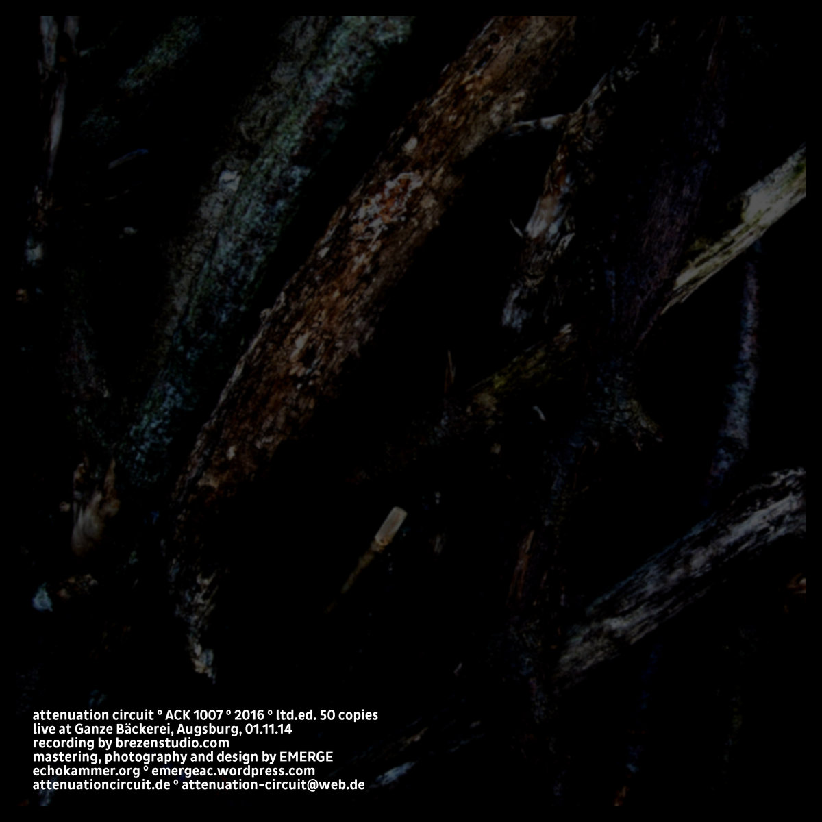 It is not uncommon for Emerge, the musical project of Sascha Stadlmeier, to use voices in his work. Usually female voices and they are usually singing. In the case of this live recording from November 1, 2014, he uses voices, but then of a more speaking variation, which he chops up and feeds through a whole bunch of sound effects and adding the sampled sounds of objects. Attenuation Circuit says that this is quite unusual for Emerge, and that this album documents a seldom-heard aspect of his music, and of course they would know, right, but the end result might perhaps not be as alien as it seems. The label connects this with the radiophonic works of Luc Ferrari, which I must admit I can relate to only a small extent. Some of the used sounds and ways to collage them might be along that way, but there is also quite a bit of Emerge way of sound treatment as we know it. Sampling sounds and using all of that gear that easily transforms any sound, something as a Kaospad or loop station and those are fed with the sounds of spoken voices and objects. The latter might be recognized as such, but the voices are hardly to hear as such. If that happens they sound recorded out of a window in a backyard. Through the nearly thirty-eight minutes