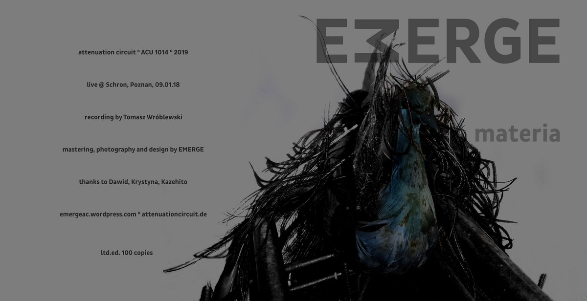 Emerge are a solo project from Germany that has had music recently reviewed in this zine and on this recording plays a mixture of experimental, electroacoustic, drone, idm, improv and minimalist music and this is a review of his live 2019 album "Materia" which was released by Attenuation Circuit.